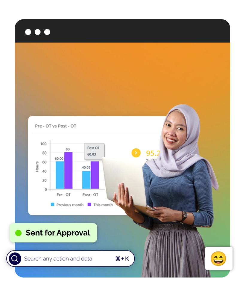 Integrated biometric and mobile attendance, overtime tracking, and digital approvals for all levels.
