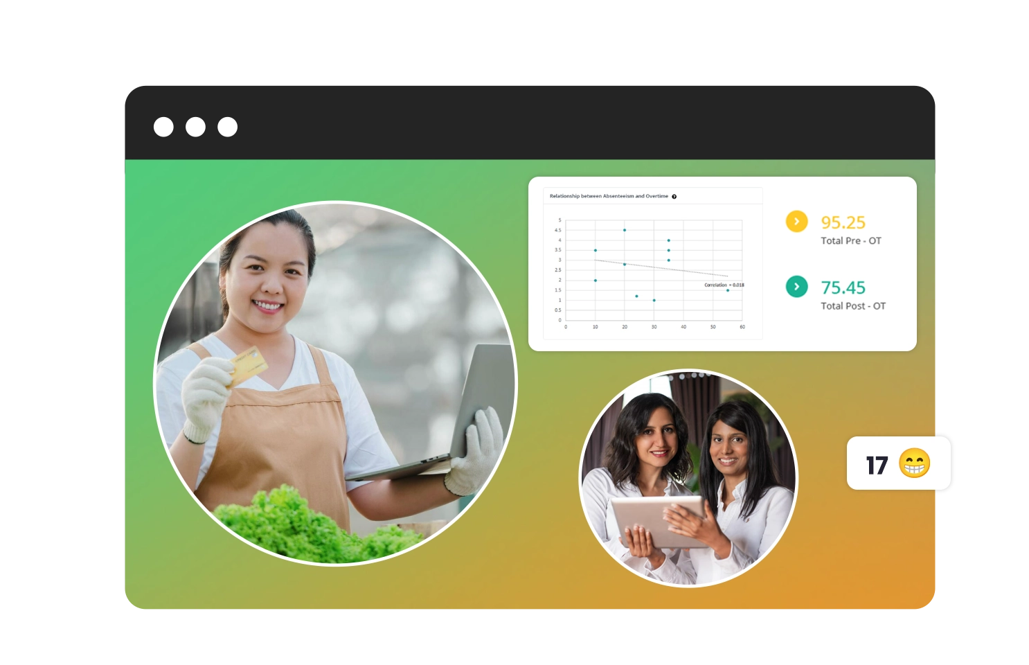 Attendance, productivity, and cost analytics in one place.